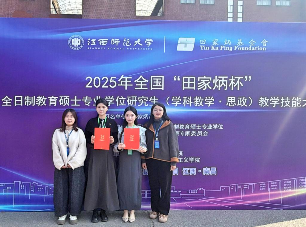 12月5日至7日,2025年全国“田家炳杯”全日制教育硕士专业学位研究生(学科教学·思政)教学技能大赛决赛在江西师范大学圆满落幕。我院选派的2023级硕士研究生陈苗、王晓婷,凭借扎实的专业功底和出色的教学能力,双双荣获三等奖,充分彰显了pp电子官网在思政教育人才培养领域的扎实成效。