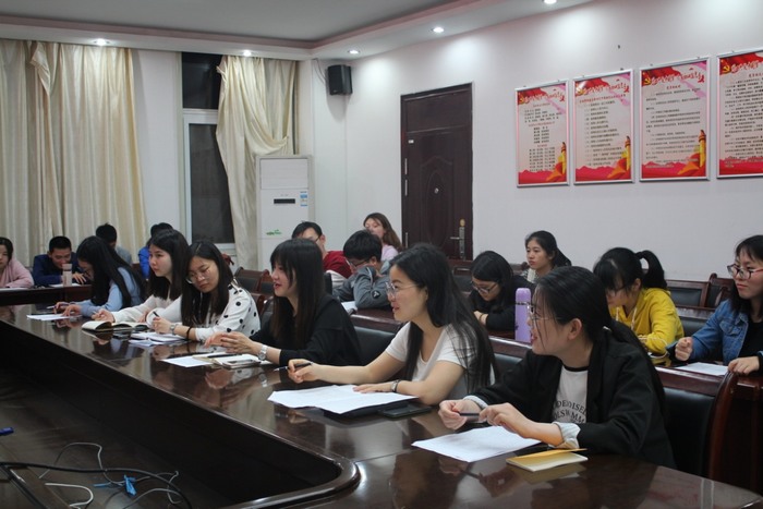 为庆祝五四运动百年纪念,pp电子官网研究生党支部拟以“弘扬五四精神,续写青春华章”为主题,举行系列活动。为了传承好“爱国、进步、民主、科学”的五四精神,支部5月5日晚上在社科楼323会议室召开“习近平在纪念五四运动100周年大会上的讲话”座谈会,支部全体党员和入党积极分子参加会议。支部书记卢云晓主持会议。