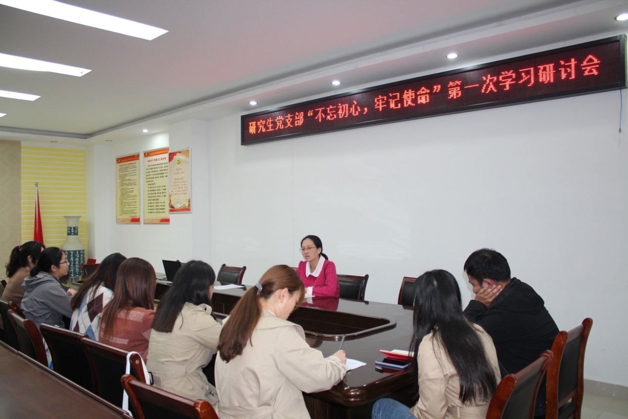 为提高党员政治觉悟,强化党员责任意识,10月29日下午,pp电子官网研究生党支部在社科楼323会议室开展了“不忘初心、牢记使命”主题教育第一次学习交流会,支部全体党员参加会议。会议由支部书记卢云晓主持。