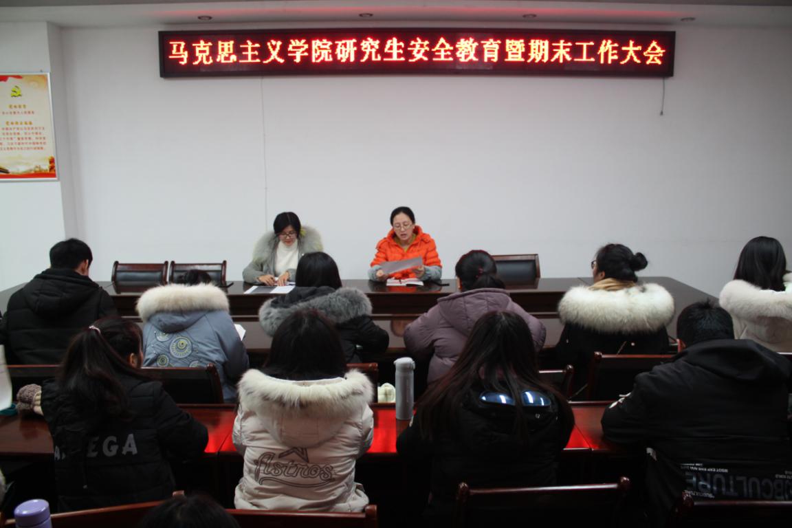 2019年12月25日,为加强研究生安全防范意识,自觉遵守校规校纪考纪,pp电子官网在323会议室召开关于安全教育以及期末工作的会议,研究生教学秘书卢云晓和班主任郑晨霞及全体研究生参加了此次会议。