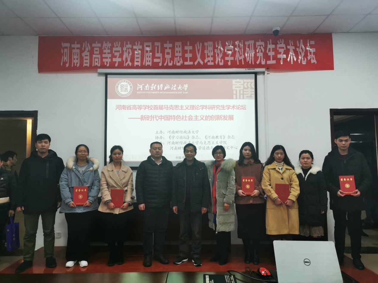 “河南省高等学校首届马克思主义理论学科研究生学术论坛——新时代中国特色社会主义的创新发展”学术研讨会在河南财经政法大学举行,pp电子官网有7名研究生提交了学术论文并受邀参加研讨会,其中有两位同学在会上作交流发言。经会议组委会评审,