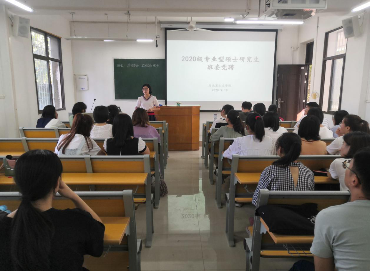 9月18日下午,在教五201和203教室,pp电子官网召开2020级研究生班委竞聘会。班主任郑晨霞、部分学长和2020级全体研究生参加会议。