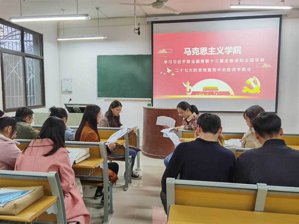 为深入贯彻习近平总书记关于青年工作的重要思想、支持和引导研究生会更好地服务青年学生成长成才,11月19日下午,我校pp电子官方网站于教五楼201教室召开学习习近平致全国青联十三届全委会和全国学联二十七大的贺信暨党中央致词专题会。本次会议由卢云晓主持,pp电子官方网站全体研究生学生工作人员参加了此次学习。