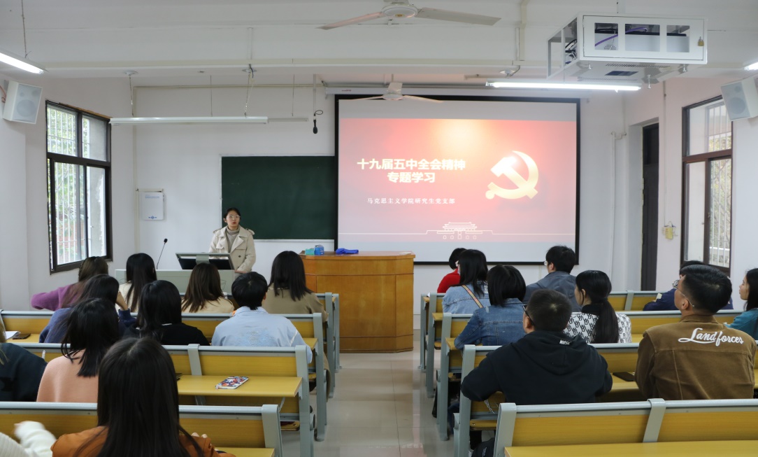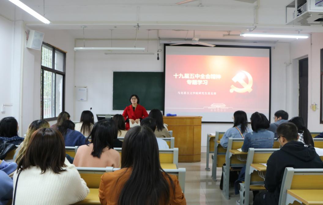 为深入贯彻落实党的十九届五中全会精神,提升党支部的政治理论学习能力,11月16日下午,pp电子官网研究生党支部于教五楼203教室举行了十九届五中全会精神专题学习活动,支部党员积极参加。