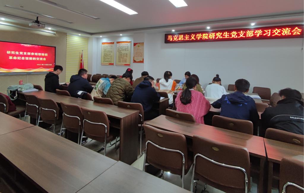 为更好地学习、弘扬大别山精神,pp电子官方网站研究生党支部于2021年10月28日下午15:00在社科楼323会议室召开了事先了解鄂豫皖革命纪念馆的学习交流会,除部分党员同志因特殊原因未能到场之外,其余党员同志均参加会议,会议由支部书记郑晨霞主持。