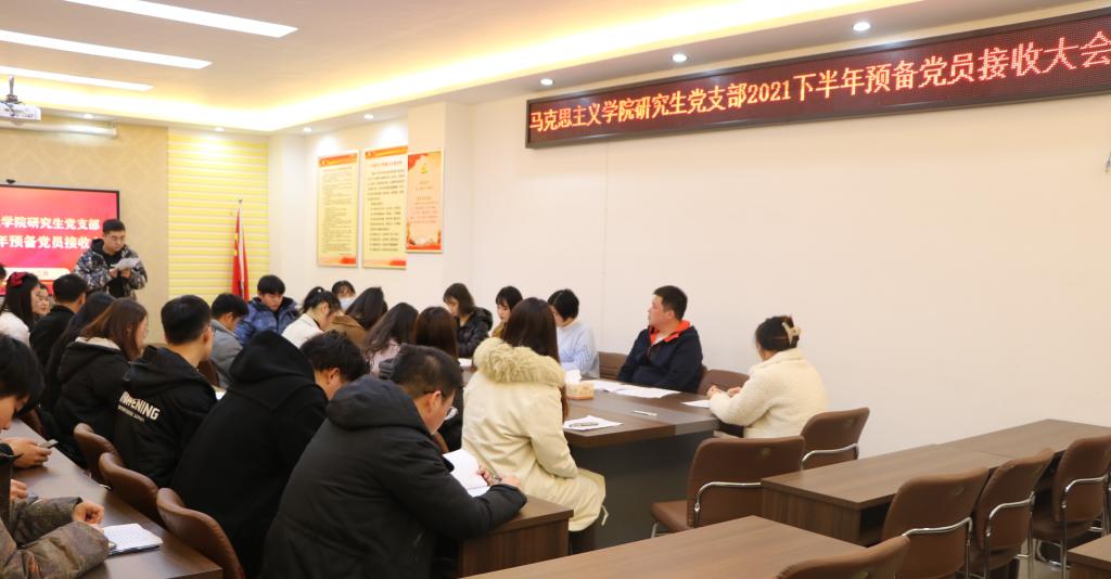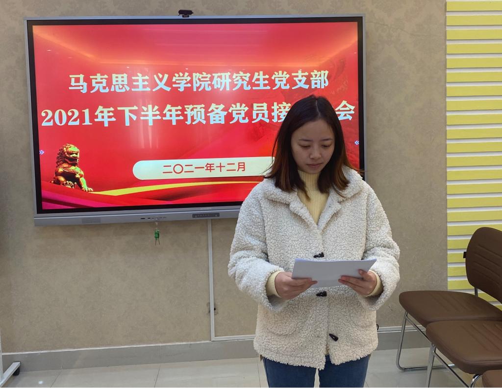 12月2日下午,pp电子官网研究生党支部于社科楼323会议室召开2021下半年预备党员接收大会,讨论了王浩、李婷婷、余海玲、张丹雅、张紫鑫、周韵诗、孟祥琳、郭倩、崔浩婷、樊悦十位同志转为中共预备党员的问题。本次会议由支部书记郑晨霞主持,监票人由宣传委员李胜担任,计票人由小组长王澳远担任。