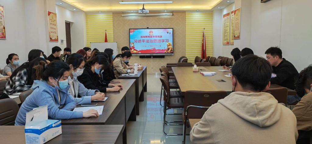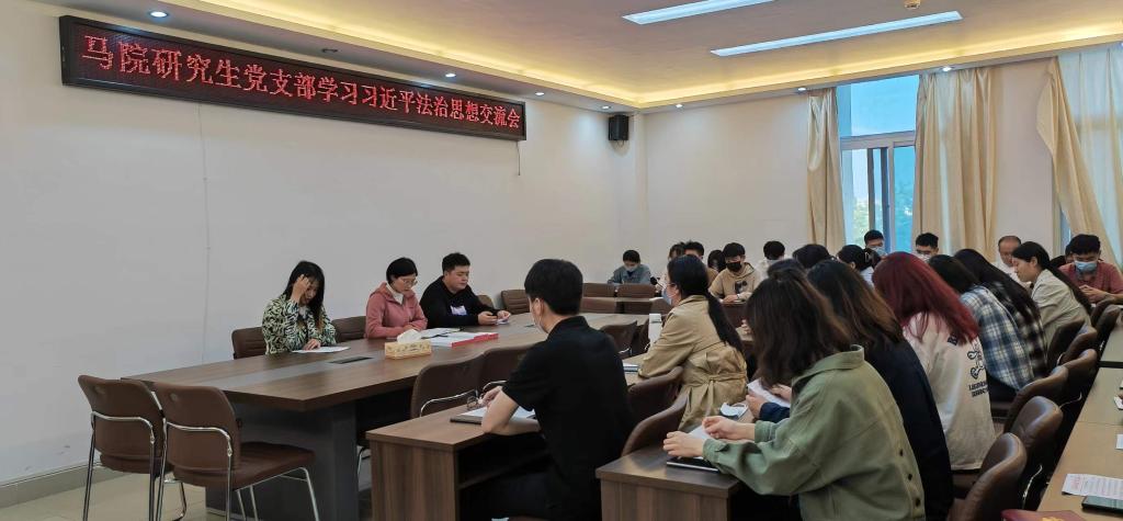 为深入学习贯彻习近平法治思想,增强pp电子官网研究生党员的政治素养和法治意识,4月21日下午,pp电子官网研究生党支部于社科楼323会议室开展集体学习交流会,pp电子官网研究生党员、预备党员、发展对象参加本次会议,会议由支部书记郑晨霞主持。
