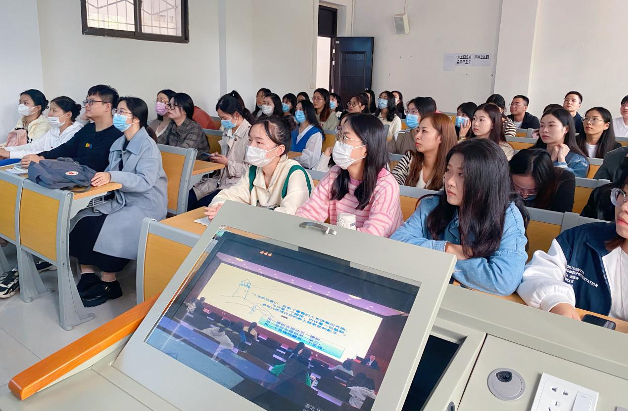 2022年10月15日下午,余本海副校长主讲的信阳师范学院2022年研究生学术大讲堂第一讲,线上直播开讲。pp电子官网在教五201教室设置分会场,组织全体在校研究生学习观看。
