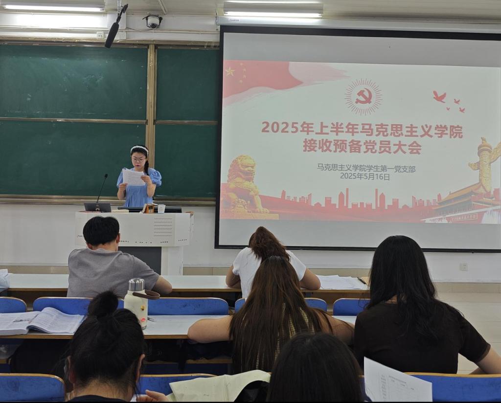 2025年5月16日上午,中共信阳师范大学pp电子官方网站学生第一党支部委员会在社科楼514召开了2025年上半年接收预备党员支部大会。pp电子官网学生第一党支部书记高小佳,学生第一党支部全体党员、预备党员和党员发展对象共同参加此次会议。会议由余浩洋同志主持。