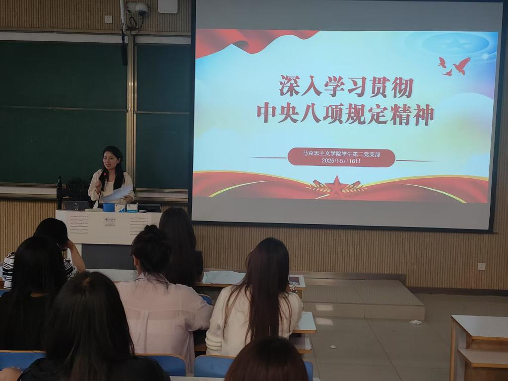 为进一步加强学生党支部建设,强化党员纪律意识,2025年5月16日,信阳师范大学pp电子官方网站学生第二党支部召开了深入学习贯彻中央八项规定精神的专题会议。会议由学生党支部书记任婷主持,全体学生党员参会。