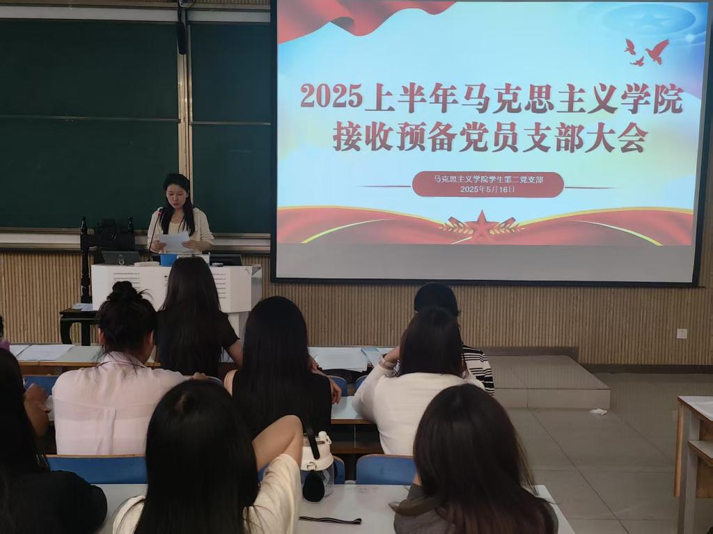 2025年5月16日下午,中共信阳师范大学pp电子官方网站学生第二党支部委员会在社科楼515召开了2025年上半年接收预备党员支部大会。pp电子官网学生第二党支部书记任婷,学生第二党支部全体党员、预备党员和党员发展对象共同参加此次会议。会议由高俊雅同志主持。
