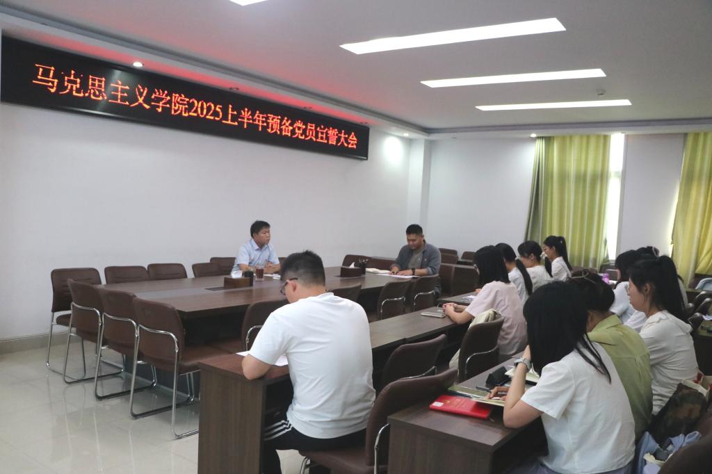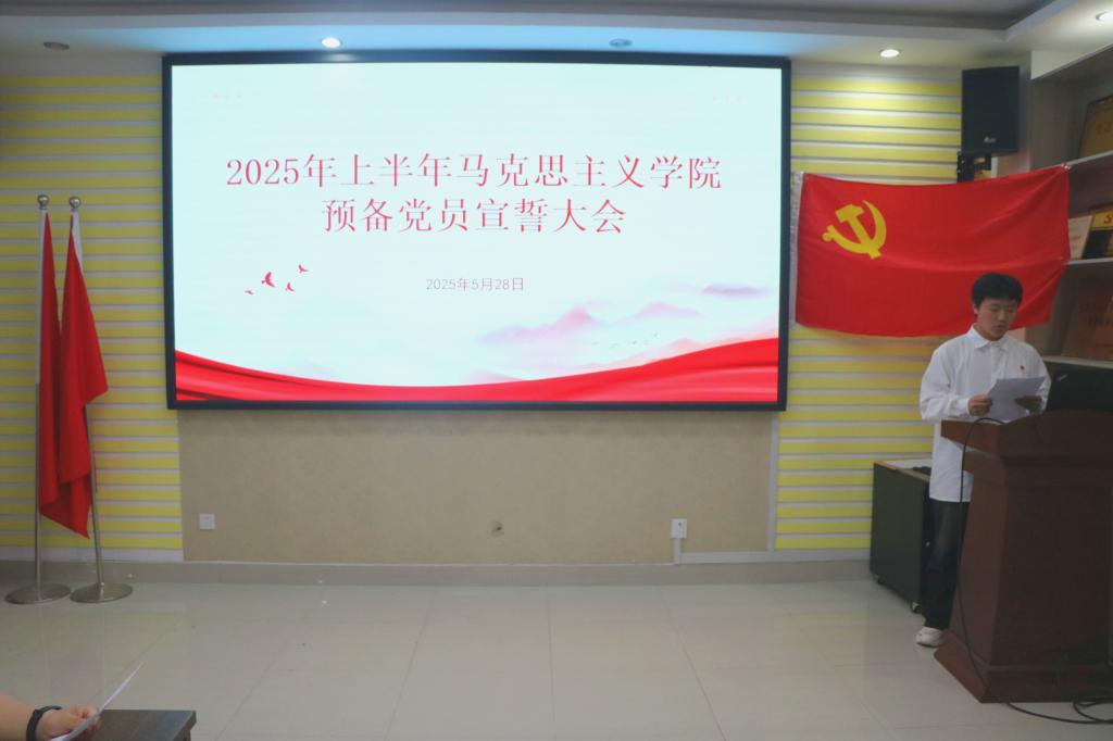 5月28日下午,pp电子官方网站于社科楼323教室召开2025年上半年预备党员宣誓大会。pp电子官网党委副书记王超、组织员金天、部分党员代表以及全体预备党员共同参与本次会议。会议由余浩洋主持。