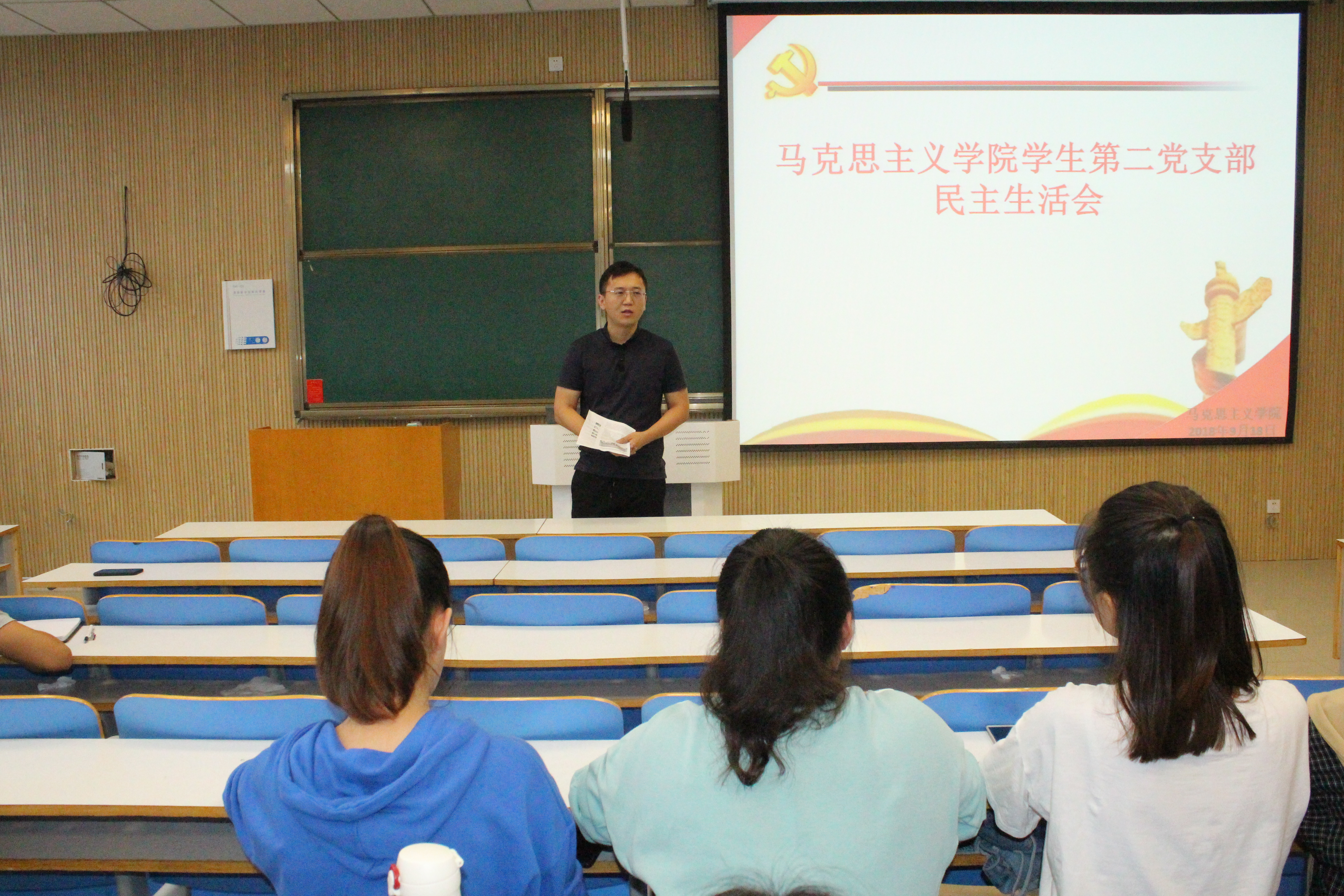 会上,曹栋首先宣读了中央巡视组巡视河南反馈意见。接着,他带头反思学生第二党支部学生党建工作的不足之处,并提出整改意见。他指出,在学生党支部纪律方面,要建立严格规范的纪律规章制度,规范组织生活。在党建活动方面,要避免单一低效的活动,学习制定活动计划书,提高党支部活动效率。在理论学习方面,要紧紧围绕习近平总书记系列讲话与中国共产党全国第十九次代表大会报告文件,提高党员自身理论素质。随后,学生第二党支部全体党员就如何开展今后党建活动展开讨论。他们提出,第一,今后进一步密切党团关系,及时收集同学们问题与建议,帮其解决。第二,可联系重大节日开展活动,也可通过电影、经典文献阅读等方式加强马克思经典原著研读,将党的精神内化于心,外化于形。第三,加强对时政热点的关注度,可集中进行讨论交流。最后,曹栋作出总结:希望大家身体力行,切实发挥学生党员模范先锋作用。同时,欢迎大家及时指正党建工作不足之处,协力打造一支具有战斗力的学生党支部。