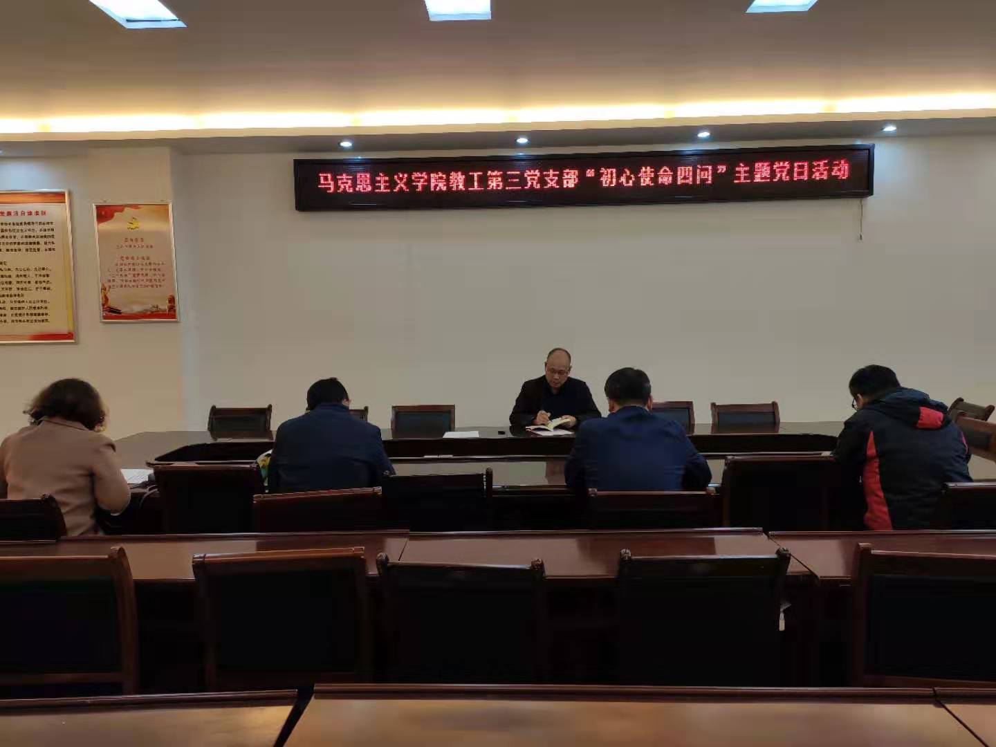 按照省委、校“不忘初心、牢记使命”主题教育办公室安排,pp电子官方网站各党支部于11月18日至19日分别开展“使命初心四问”主题党日活动,学院领导班子成员分别以普通党员身份参加。主题活动分别由各党支部书记主持。