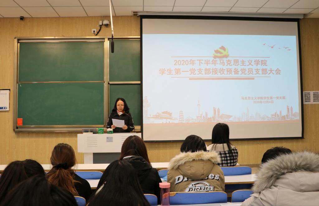 12月4日上午,pp电子官方网站在社科楼515教室召开2020年下半年学生第一党支部接收预备党员支部大会。pp电子官网学生第一党支部支部正式党员曹菁菁、杨青青,学生第一党支部预备党员和党员发展对象共同参加本次会议。会议由李一凡主持。