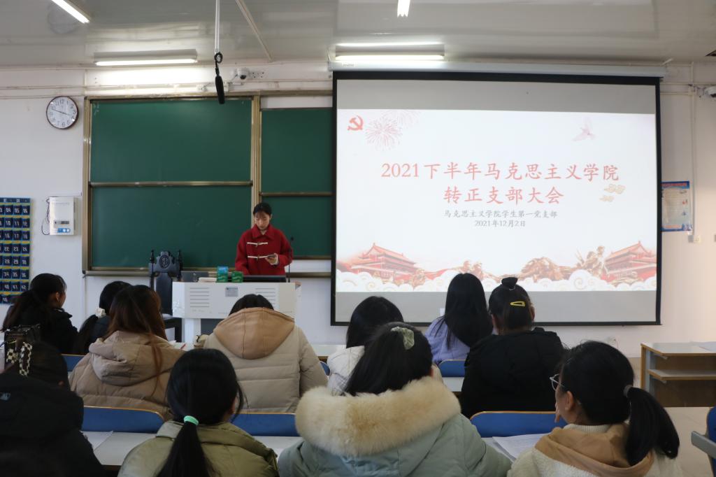 12月2日下午,pp电子官方网站学生第一党支部2021年下半年预备党员转正支部大会在社科楼514教室组织召开。pp电子官网学生第一党支部书记杨青青,学生第一党支部正式党员、预备党员和党员发展对象共同参加本次会议。会议由靳雨露主持。