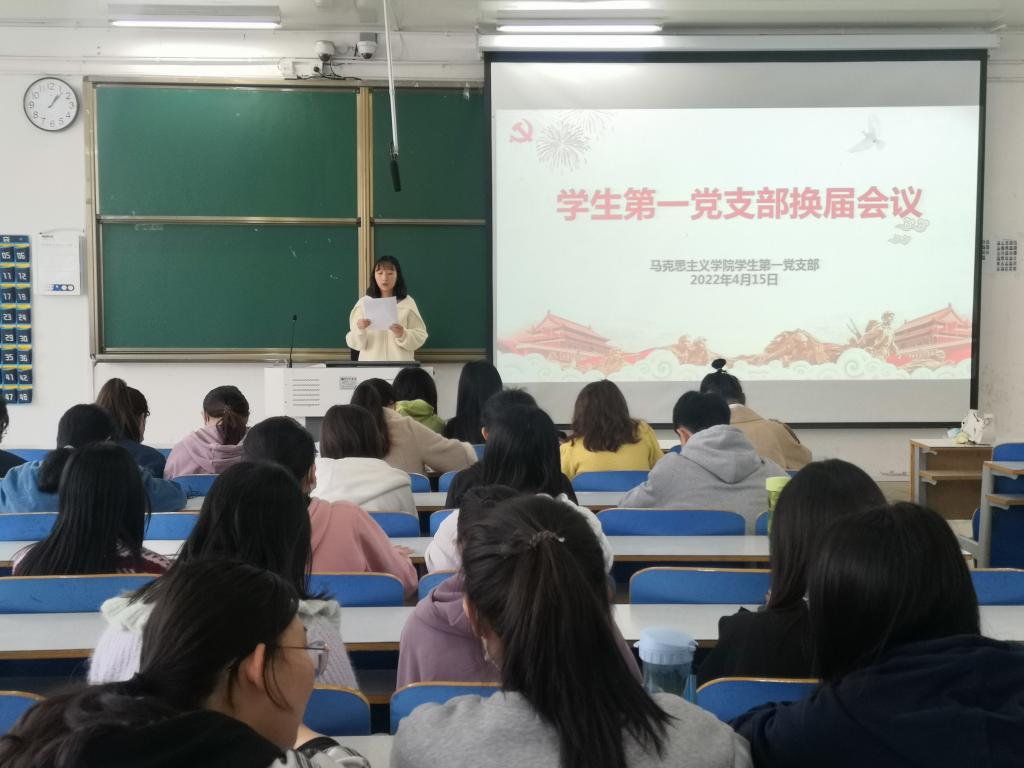 4月15日下午,pp电子官方网站学生第一党支部委员会换届选举大会在社科楼516教室顺利召开。支部全体党员和预备党员参会。此次会议由党支部组织委员靳雨露主持。