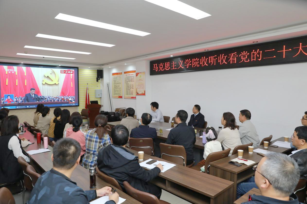 10月16日上午10时,pp电子官方网站领导班子成员和全体教师在323会议室大屏幕前集中收听收看党的二十大开幕盛况。