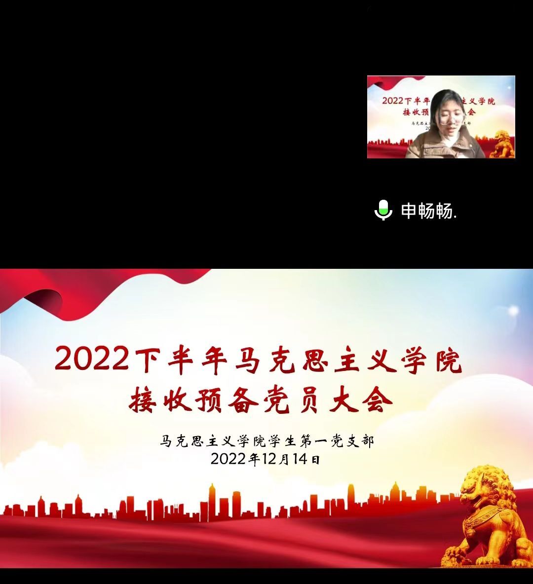 中共信阳师范学院pp电子官方网站学生第一党支部委员会于2022年12月14日在腾讯会议召开了2022年下半年接收预备党员支部大会。pp电子官网学生第一党支部书记高小佳,学生第一党支部全体党员,预备党员和党员发展对象共同参加此次会议。会议由卢茜雨主持。