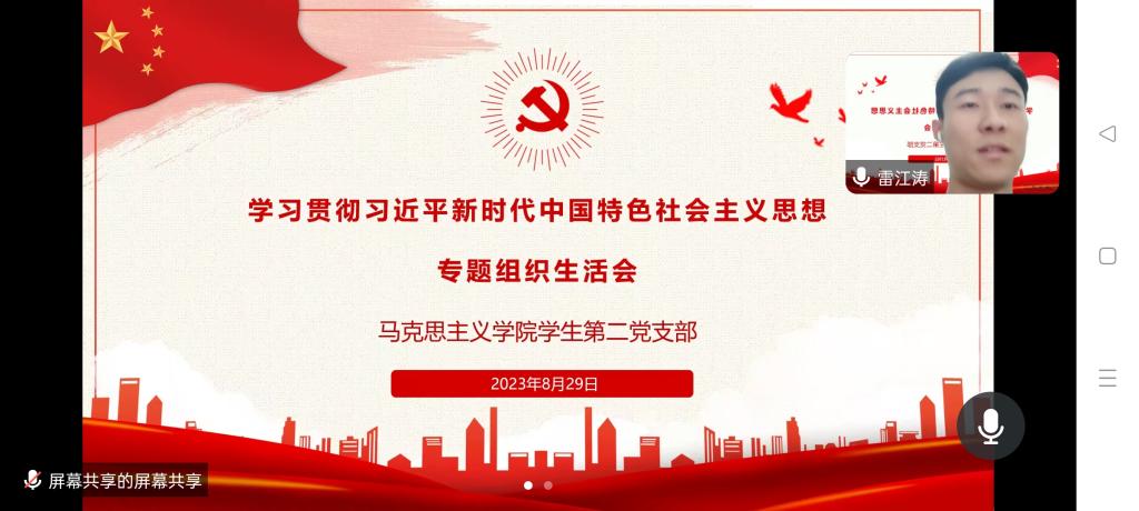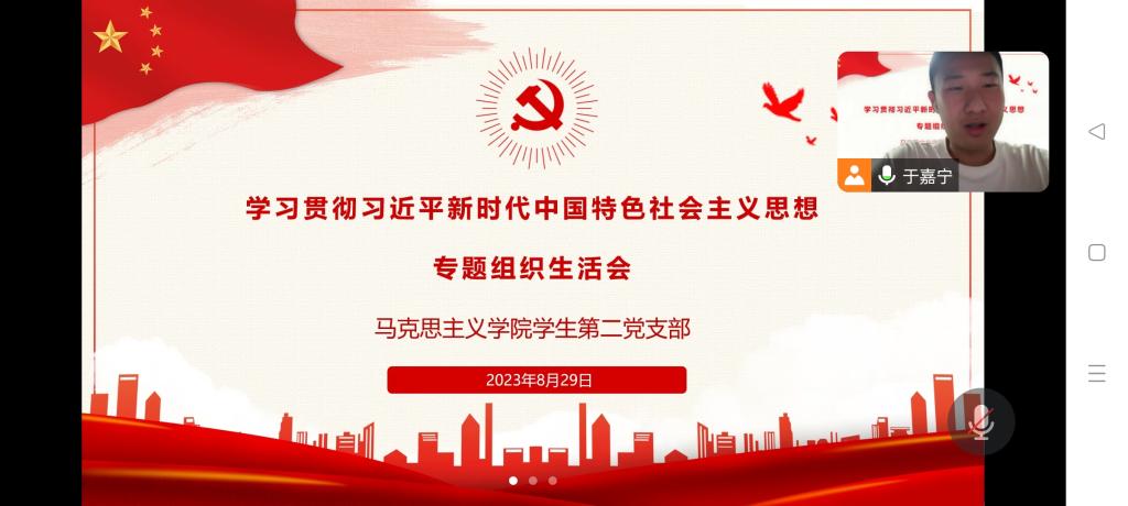 为积极贯彻落实校党委关于开展学习习近平新时代中国特色社会主义思想专题组织生活会的通知要求,8月29日晚上,pp电子官方网站学生第二党支部结合实际情况,通过腾讯会议召开学习贯彻习近平新时代中国特色社会主义思想专题组织生活会。学生第二党支部全体党员、预备党员参加会议,学生第一党支部书记高小佳同志参会并指导会议。会议由组织委员于嘉宁同志主持。