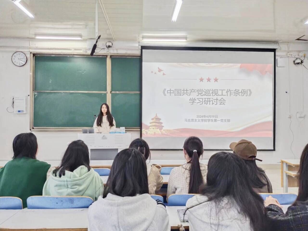 2024年4月19日下午,pp电子官方网站学生第一党支部结合实际情况在社科楼514教室开展了《中国共产党巡视工作条例》学习研讨会。pp电子官网学生第一党支部书记高小佳,学生第一党支部全体正式党员及预备党员共同参加本次会议。会议由高小佳同志主持。