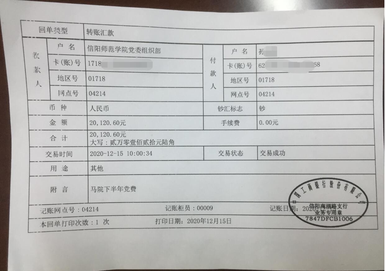 pp电子官方网站2020年下半年党费缴纳公示