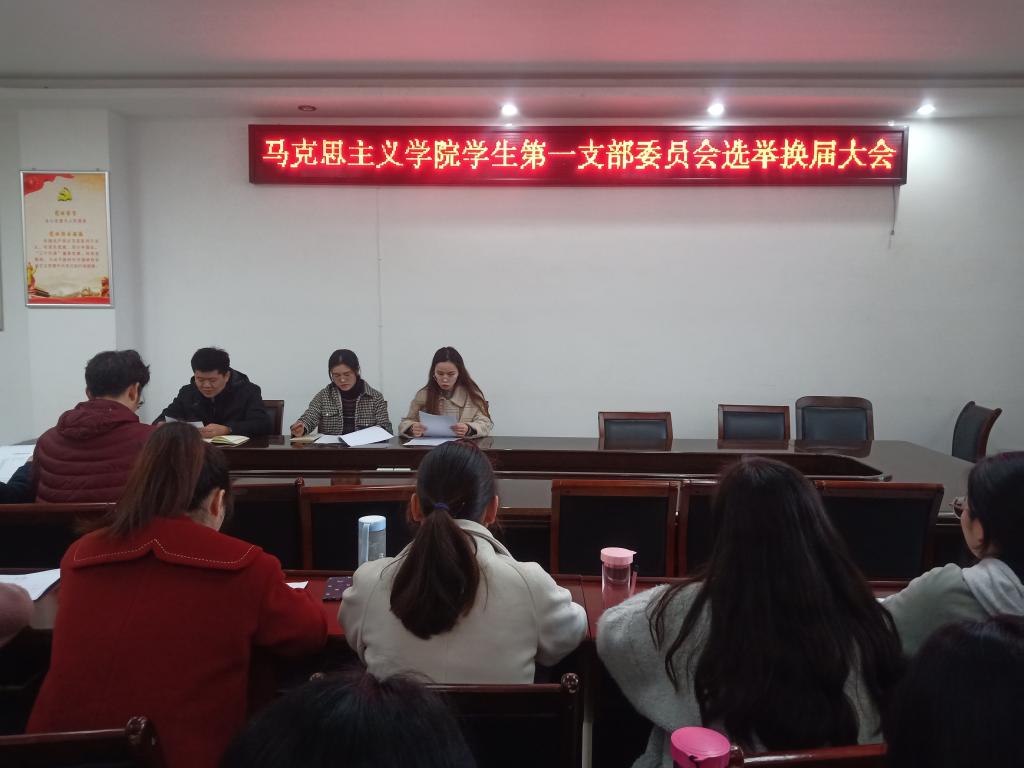 3月15日下午,pp电子官方网站学生第一支部委员会选举换届大会在323会议室召开。学生一支部书记孙绪曙、党小组组长杨青青、全体学生党员和预备党员参加会议。会议由支部组织委员谢文静主持。