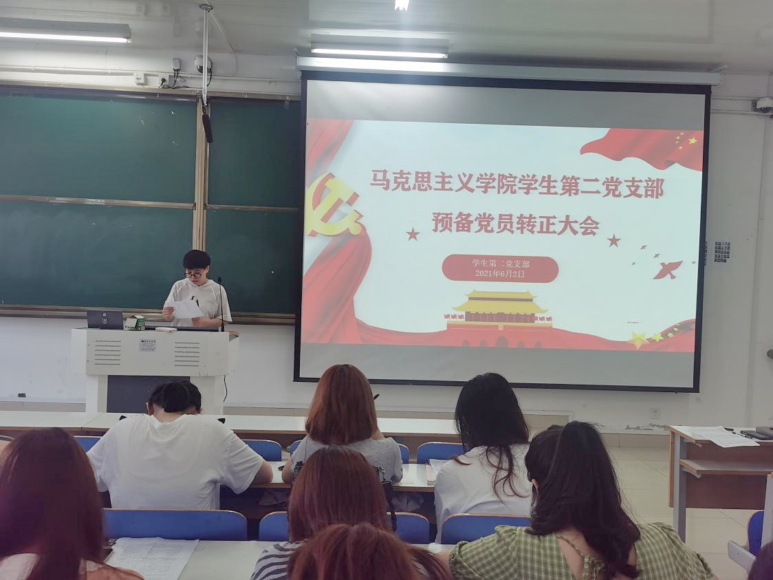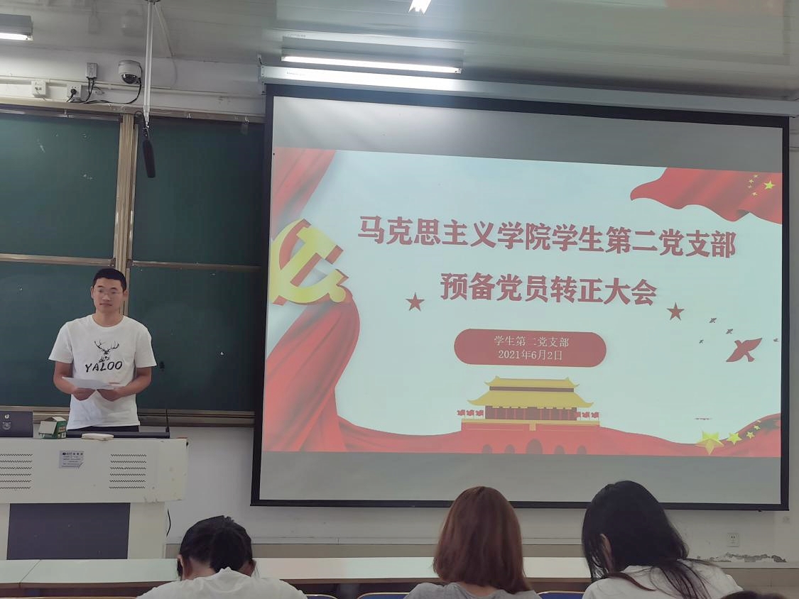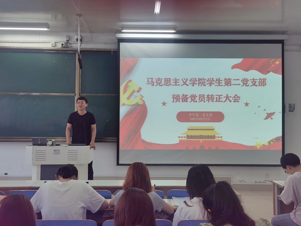 2021年6月2日上午,pp电子官方网站2021年上半年学生第二党支部预备党员转正大会在社科楼516教室召开。学生第二党支部书记曹梦真,支部全体正式党员和预备党员共31人参加了此次会议。会议由杨康主持。