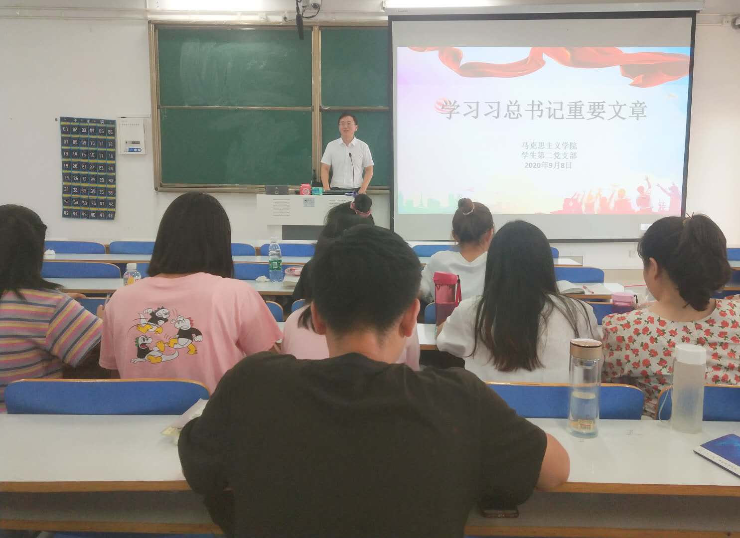 9月8日下午,pp电子官方网站学生第二党支部在社科楼514教室顺利开展“学习习近平总书记重要文章”主题党日活动。学生第二党支部书记曹栋、全体支部党员共同参加此次活动。会议由支部书记曹栋主持。