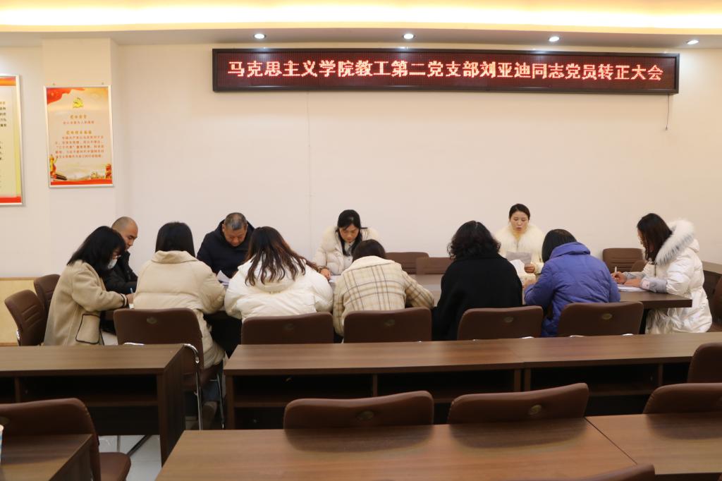 12月15日下午,pp电子官方网站教工第二党支部在社科楼323会议室召开入党转正大会。教工第二党支部支部书记胡春湘、正式党员王帆宇、徐化影、张朝霞、陈雷、曾帝、胡春湘、黄世明、叶长红、王建礼,预备党员刘亚迪共同参加本次会议。会议由胡春湘主持。