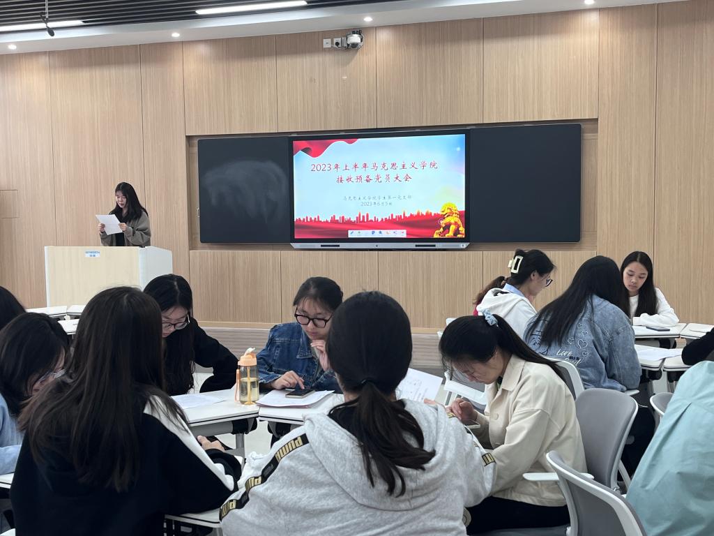 6月5日上午,pp电子官方网站学生第一党支部在社科楼516教室组织召开2023年上半年接收预备党员支部大会。pp电子官网学生第一党支部书记高小佳、学生第一党支部全体党员、预备党员和发展对象共同参加本次会议。会议由卢茜雨主持。