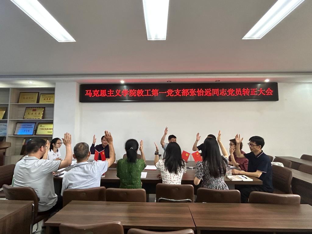 6月1日下午,pp电子官方网站教工第一党支部在社科楼323会议室召开入党转正大会。会议由教工第一党支部书记陈杰主持。