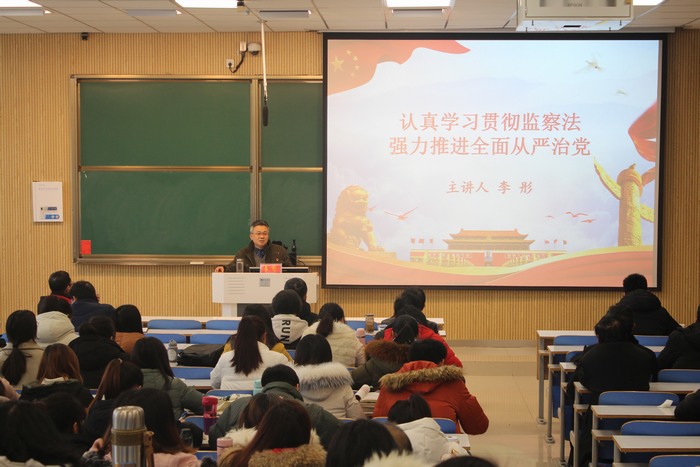 12月11日下午,信阳市纪委监察委副主任李彤莅临pp电子官网作了 “认真学习监察法 强力推进全面从严治党”主题报告。pp电子官网全体教工党员、学生党员、预备党员、党员发展对象共同聆听了本次报告会。报告会由院党委书记唐国战主持。
