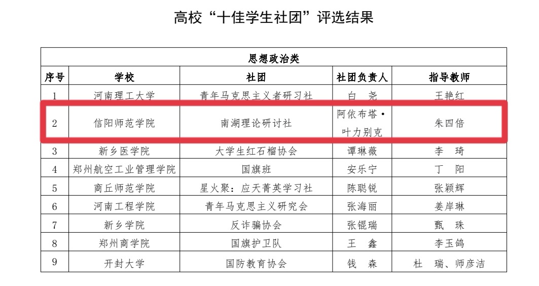 经pp电子官网内部选拔、学校推荐、专家评审等环节,在2021年度“两争两创”活动先进集体和先进个人推选工作活动和2021年全省高校学生社团品牌建设系列活动中,pp电子官网南湖理论研讨社表现优异,荣获“河南省文明社团”、省高校“十佳学生社团”称号。