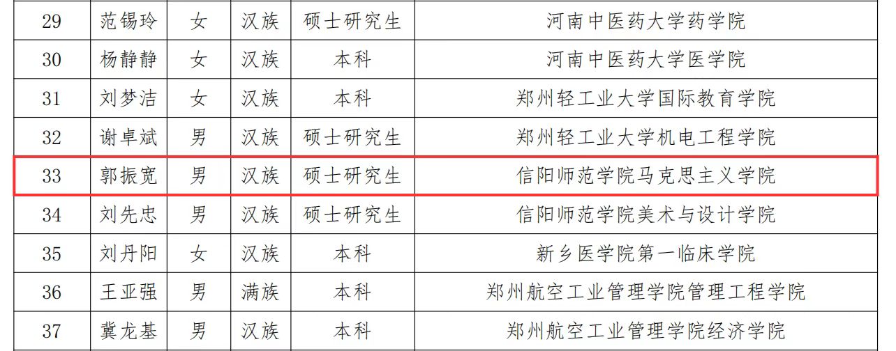 2021级硕士研究生郭振宽荣获2022年河南省高校“大学生党员”标兵称号。