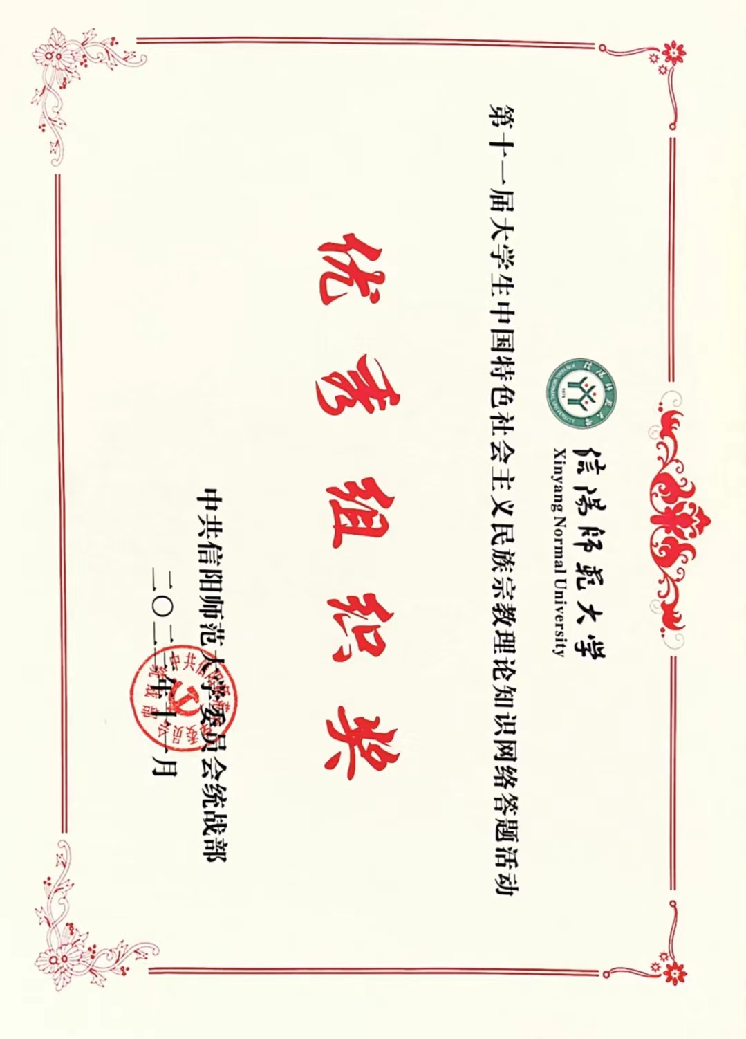 pp电子官方网站荣获第十一届大学生中国特色社会主义民族宗教理论知识网络答题活动“优秀组织奖”