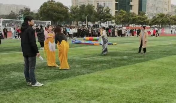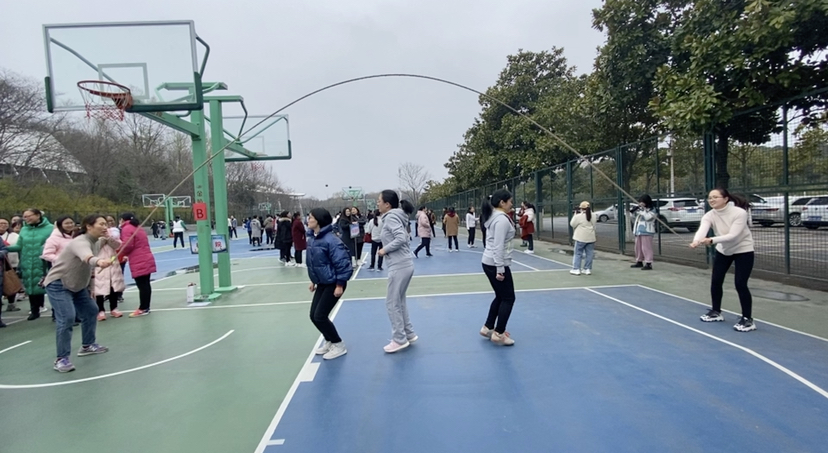 一根绳子,一份努力。pp电子官网女教师积极参加五人跳绳项目。