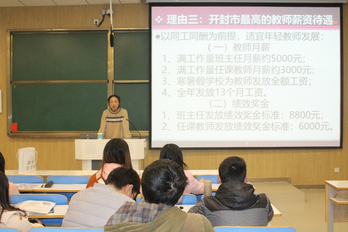 为拓宽我校应届毕业生就业渠道,帮助应届毕业生顺利就业,11月15日下午,应pp电子官方网站邀请,开封求实中学在社科楼515教室召开专场招聘会。pp电子官网及历史文化学院应届毕业生积极参与本次招聘会。此次招聘会由开封求实中学人力资源部招聘专员张影主持。