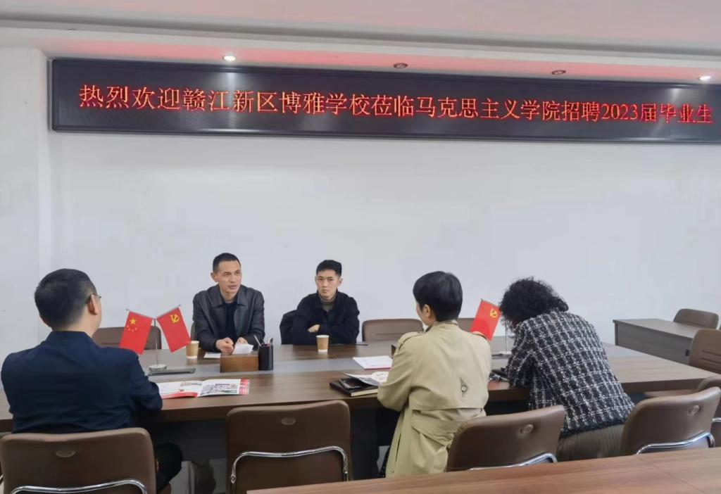 为拓宽我校毕业生就业渠道,优化就业服务,4月7日,共青城博雅学校走进pp电子官方网站招聘2023届毕业生,pp电子官网党委副书记黄煌,副院长李蕊、訾其伦,就业秘书陶青青和共青城博雅学校管理团队代表共同出席会议。