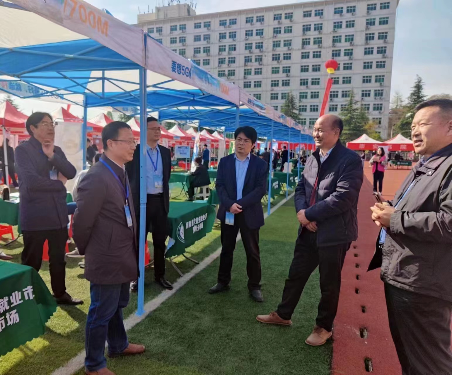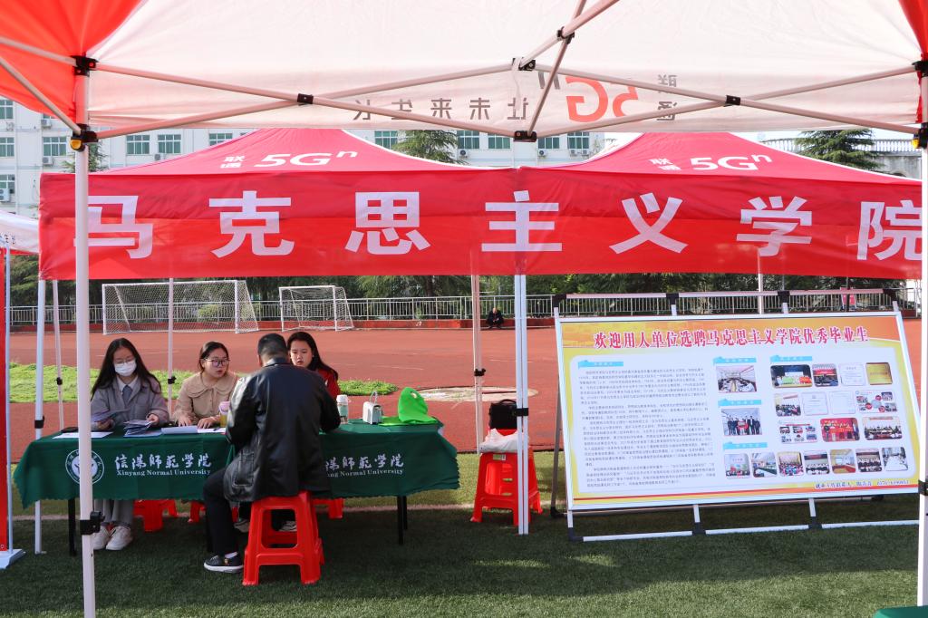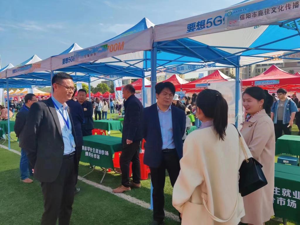 4月8日上午,河南省毕业生就业市场豫南分市场暨信阳师范学院2023届毕业生春季双向选择洽谈会在我校西操场拉开帷幕。本次双选会由河南省教育厅主办,河南省大中专就业服务中心、信阳师范学院、信阳市人力资源和社会保障局共同承办。pp电子官网党委书记朱四倍,院长唐国战,副院长周智、程晋富、訾其伦,党委副书记黄煌和就业秘书陶青青前往西操场pp电子官方网站服务平台进行走访。