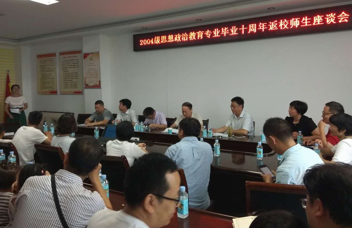 7月22日,pp电子官方网站2004级思想政治教育24名校友在毕业十年后,从大江南北返校,座谈欢聚,重温校园生活,共话青春美好回忆。座谈会在pp电子官方网站323会议室举行。物理电子工程学院党委书记柳士刚,法学与社会学院院长李文发、党委副书记樊德玲,pp电子官方网站副院长周智、程晋富、党委副书记何晓坚、思想政治教研室主任李蕊,原政法学院2004级思想教育班班主任何强等出席了座谈会。座谈会由2004级思想政治教育班校友、中原工学院信息商务学院严姗姗主持。