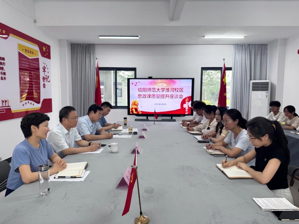 9日上午,唐国战一行在淮河校区党建中心会议室参加了“信阳师范大学思政课质量提升座谈会”,会议由淮河校区人文学部主任李蕊主持。李蕊简要介绍了淮河校区思政课师资、学情和教学情况。唐国战首先听取了2023级小学教育专业和社会体育指导与管理专业,2024级护理学专业和食品科学与工程专业10名学生代表学习思政课的收获、感受和建议。随后听取了青年教师杜贺、周翠翠、冯玥、赵双从事思政课教学的体会、困惑和建议。唐国战强调,淮河校区思政课既是我校思政课教学一体化的重要组成部分,也是我校思政课教学质量共同提高的重要组成部分。在今后的教学工作中,思政课教师要提高对思政课重要性的认识,牢记为党育人、为国育才的使命与担当,努力做到开拓奋进、敬业奉献。要认真抓好集体备课这个重要环节,运用多种方式,把道理讲深讲透讲活。三个校区之间要加强沟通交流,实现资源共享,同频共振,共同推进我校思政课教学高质量协同发展。