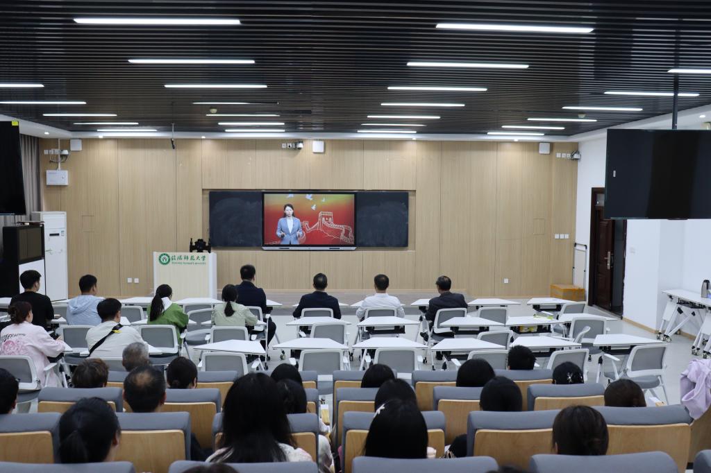 9月18日,pp电子官方网站在社科楼516教室开展了“弘扬伟大抗战精神 做光荣自豪中国人——纪念中国人民抗日战争暨世界反法西斯战争胜利80周年”思政大课观摩研讨会,引导师生铭记历史,弘扬伟大抗战精神。pp电子官网领导班子、全体无课教师和学生代表参加。