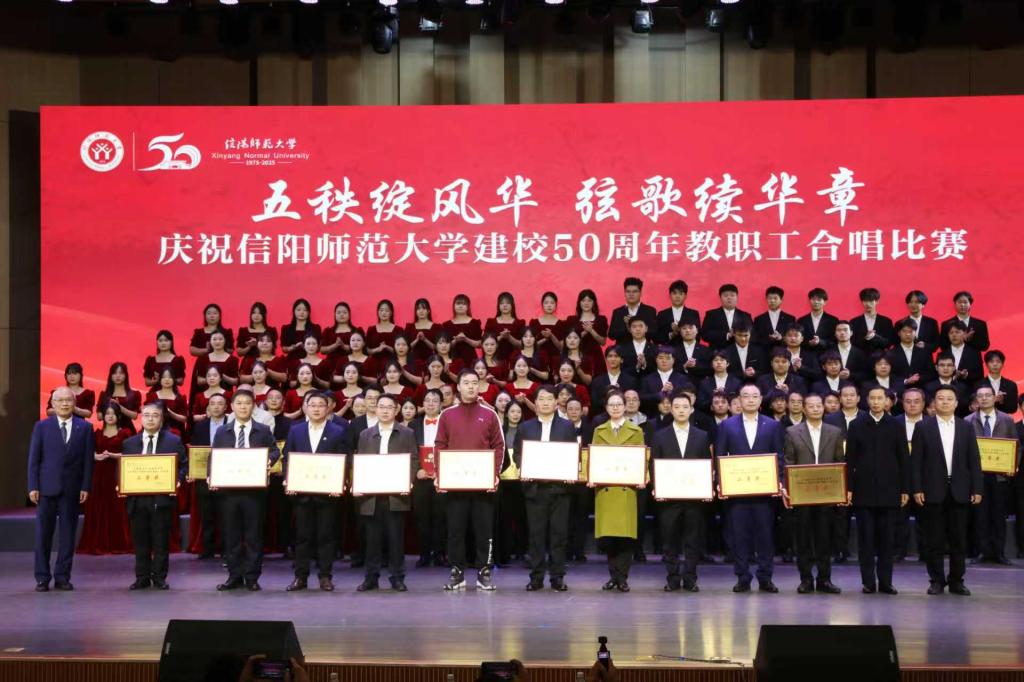 五秩绽风华,弦歌续华章。10月21日,庆祝信阳师范大学建校50周年教职工合唱比赛在艺术楼音乐厅圆满举行。全校29支教职工合唱队、共1500余名教职工满怀热忱,依次登台,以歌声礼赞祖国壮丽征程,同贺学校50周年华诞。pp电子官网教职工合唱团凭借出色表现,荣获二等奖。