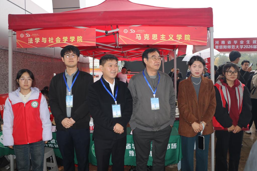 11月7日,河南省毕业生就业市场豫南分市场暨信阳师范大学2025届毕业生秋季双向选择洽谈会在体育馆举行。pp电子官方网站党委副书记王超、副院长周智及就业秘书沈海蓄、杨春艳老师现场指导,为毕业生求职提供支持。