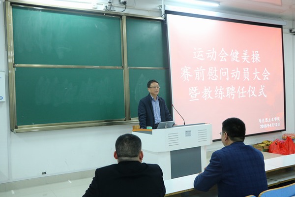 为鼓励大家积极参加训练,调节参赛人员的心理状态,4月12日下午,pp电子官方网站在社科楼516教室举行了运动会健美操赛前慰问大会暨教练聘任仪式。pp电子官网党委书记唐国战,党委副书记徐永新、何晓坚,副院长程晋富,党委秘书孙绪曙,团委书记曹栋,团委老师曹菁菁与pp电子官网学生会部分成员一同慰问运动员和健美操训练人员。仪式由分团委副书记张雅琼主持。