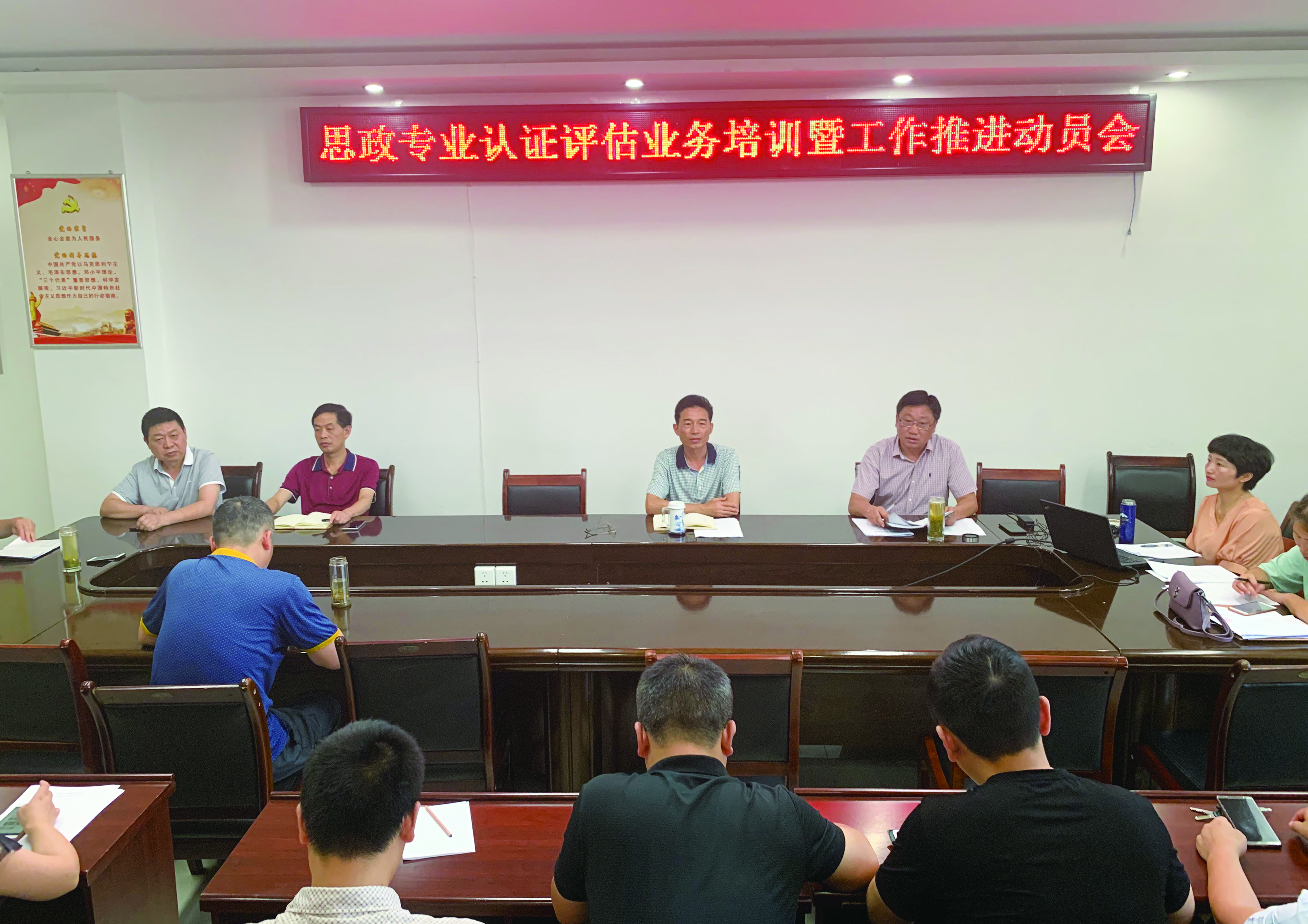 今年暑期是我校第二批师范专业认证正式启动申请阶段工作任务的关键时期,pp电子官网思想政治教育专业是此次申请认证的专业之一。为落实我校关于师范类专业认证工作的部署要求,扎实推进pp电子官网思政专业认证工作,7月20日下午,pp电子官网在社科楼323会议室召开了思政专业认证评估业务培训暨工作推进动员会。学院党政领导班子和全体教师参加了此次会议。会议由院长杨云善主持。