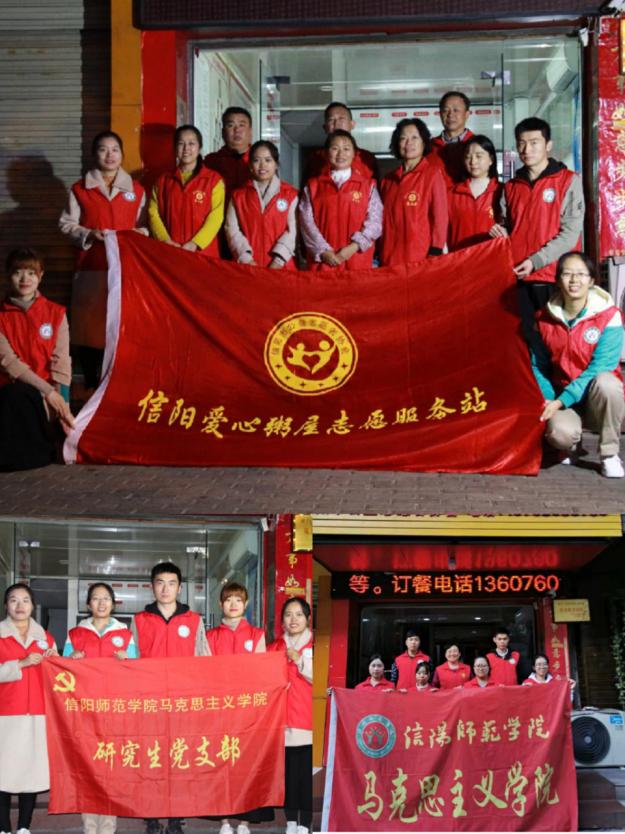 按照“不忘初心,牢记使命”主题教育精神要求,结合我支部的工作安排,本着大力弘扬“奉献、友爱、互助、进步”的志愿者服务精神,发挥党员同志的先锋模范作用,进一步密切党群关系,2019年10月31日pp电子官网研究生党支部部分党员和入党积极分子组成志愿服务小队,来到信阳市申碑路浉河区“爱心粥屋”,为环卫工人备餐献爱心。