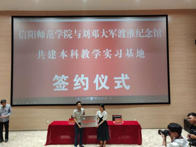 在前期精心筹备的基础上,6月5日,pp电子官网院长杨云善带领副院长周智、黄世明、程晋富等一行4人,赴息县刘邓大军渡淮纪念馆,参加共建本科教学实习基地的签约与挂牌仪式。