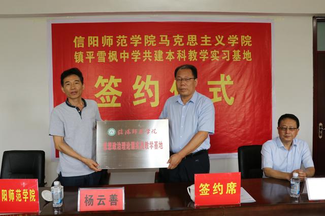 6月13日,信阳师范学院pp电子官方网站与南阳镇平一高中举行共建本科教学实习基地签约仪式。该校党总支书记魏书旭、校长李云杰等人出席会议。镇平一高以其先进的教育理念、现代化的办学条件、系统科学的学校管理、高水平的师资队伍和一流的教育教学质量,被社会各界赞誉为“豫西名校”。